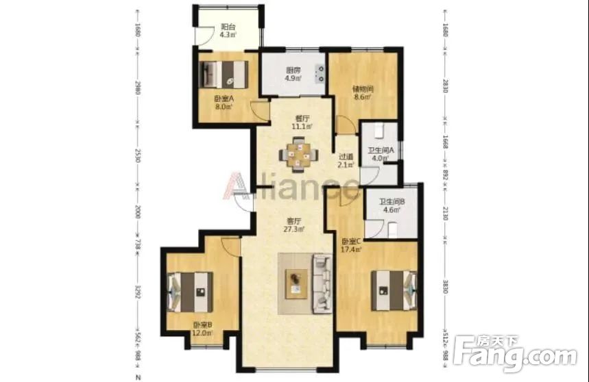 1.格局相当漂亮,好摆家具和电器。