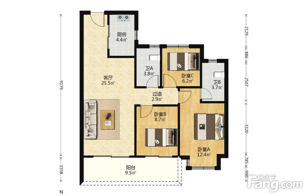 3室2厅1卫