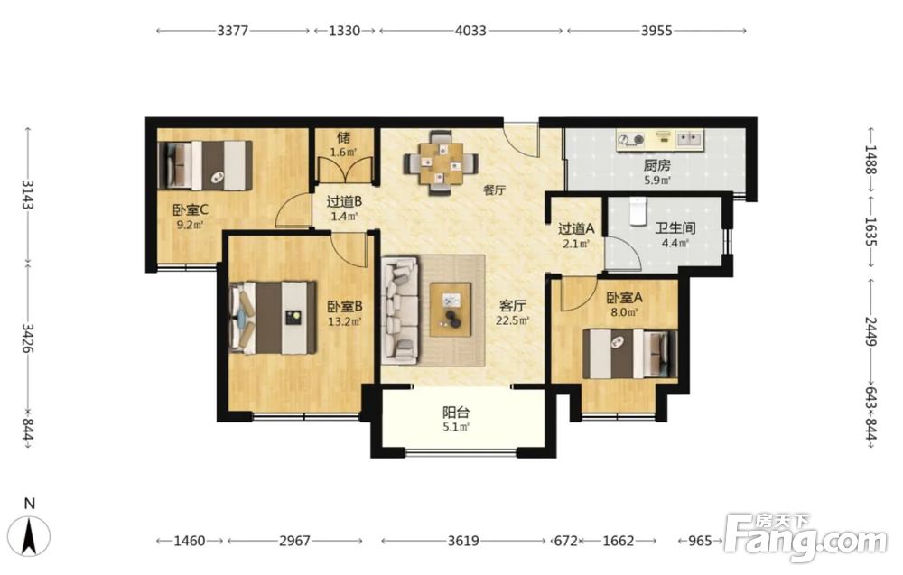 • 当前房源报价为:133.80万