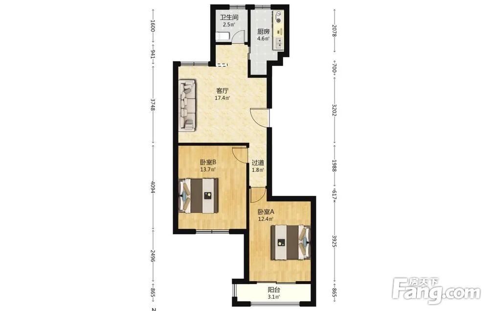 • 当前房源报价为:105.00万
