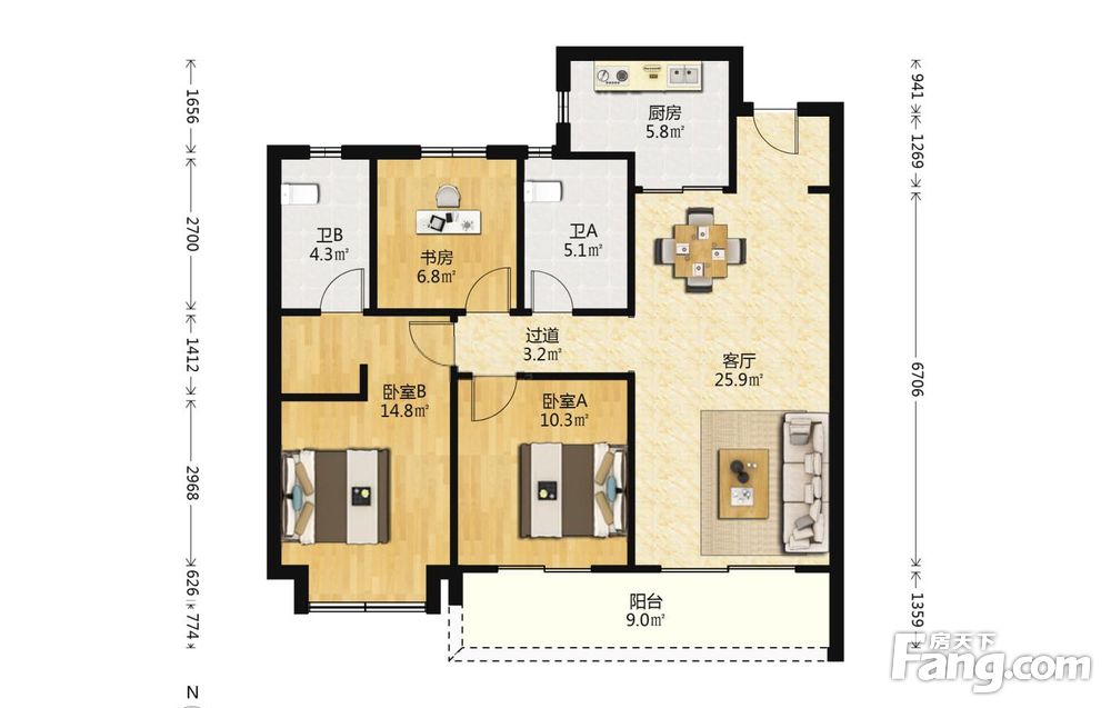 3室2厅1卫