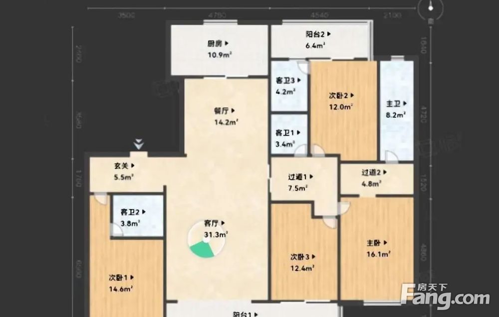 • 当前房源报价为:1200.00万