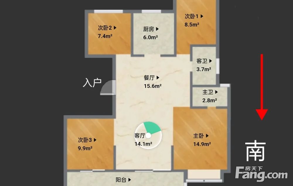 1户型方正南北通透,