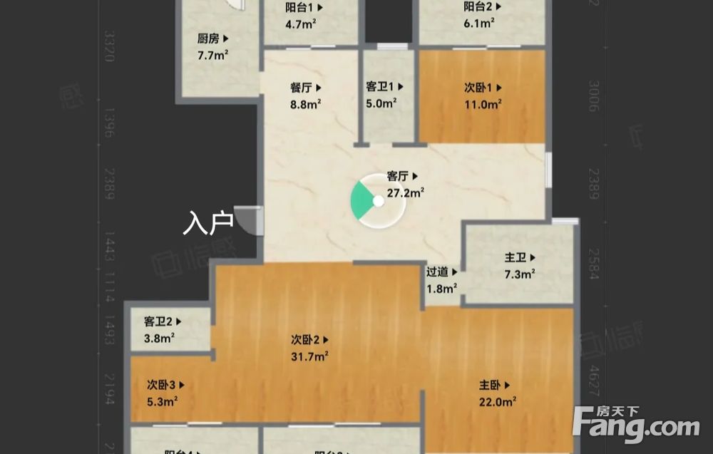 房屋面积∶166.73平方米,房屋价格:444万,
