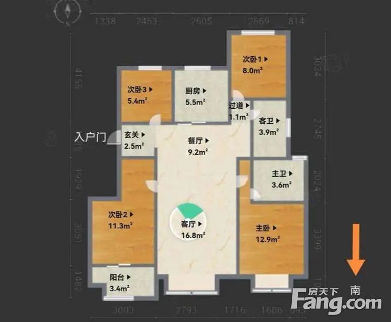 房屋年代∶2021年,房屋面积∶110.88平方米,朝向∶正南