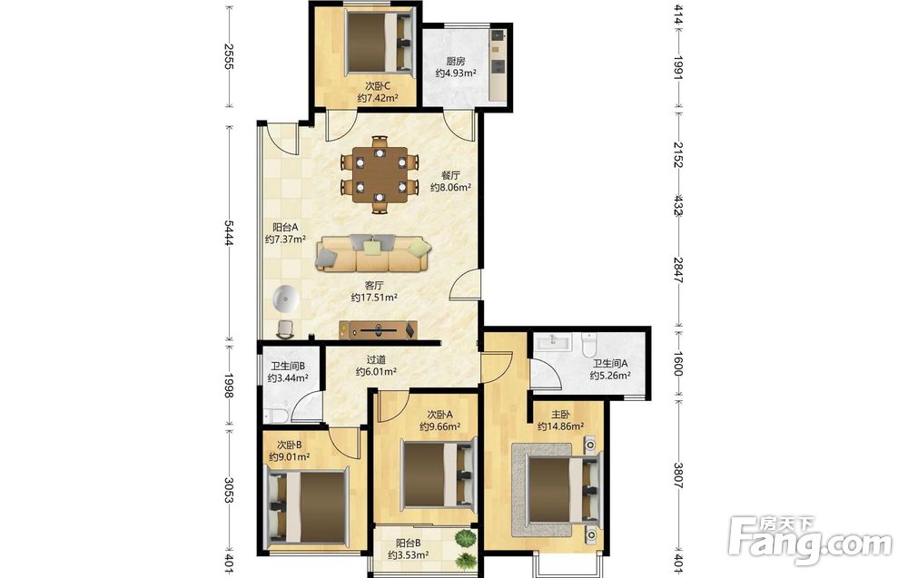 一、房源优势正规户型,日照充足,空气流畅