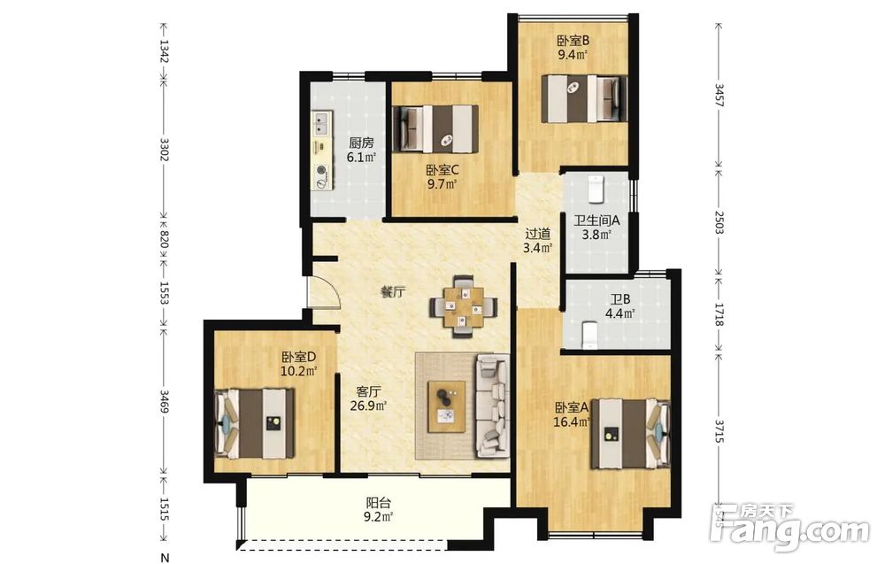 此房户型方正,三房朝南,中间楼层,采光佳